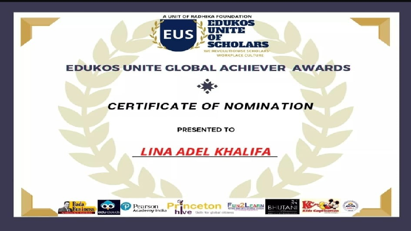 يُذكر أن المعلمة لينة خليفة قد حصدت العديد من الألقاب العالمية أبرزها سفير منصة ويكليت التعليمية، وسفير منصة بونسي التعليمية، وسفير أسبوع التعليم العالمي T4.