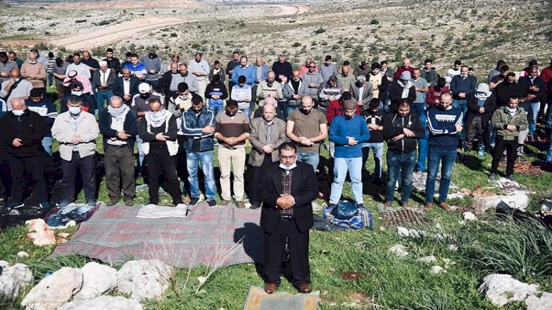 مواطنون يؤدون صلاة الجمعة على الأراضي المهددة بالاستيلاء جنوب الخليل