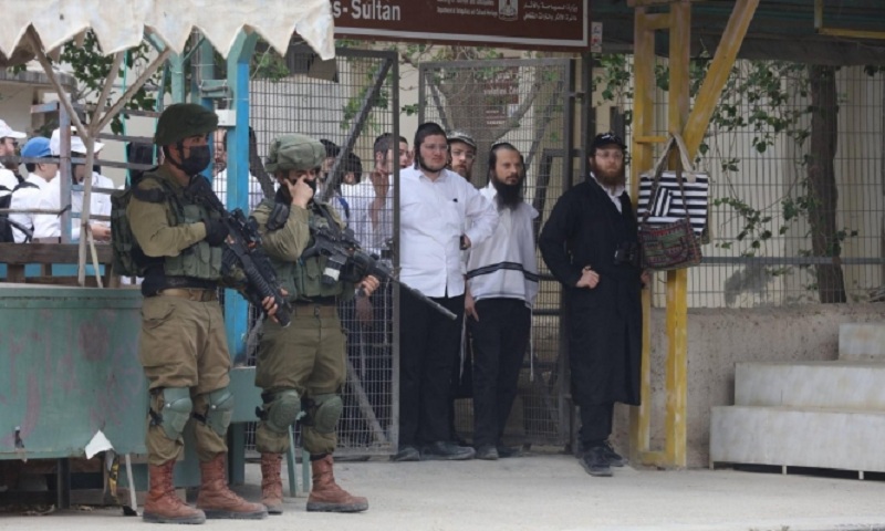 وأفاد شهود عيان، بأن المستوطنين قاموا بالرقص والغناء في ساحات المسجد الإبراهيمي، تحت حماية جنود الاحتلال الذين انتشروا في المكان بكثافة.