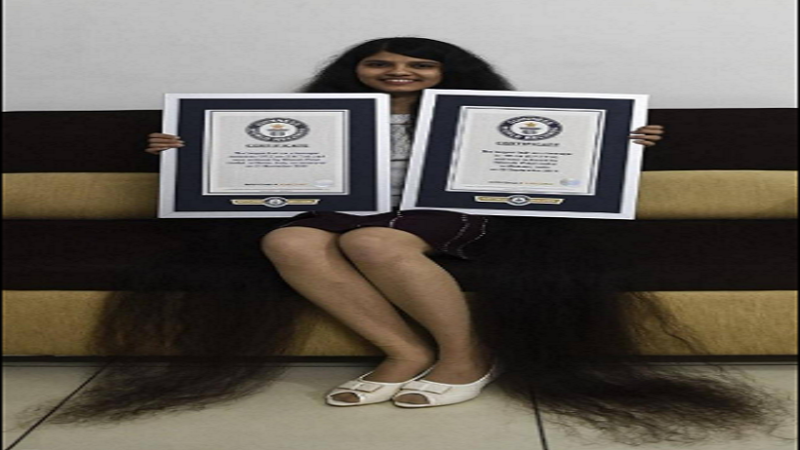 وتمتلك الهندية، نيلانشي باتيل، 18 عامًا، الرقم القياسي لأطول شعر في سجل غينيس، منذ العام 2018، بعدما وصل طول شعرها إلى أكثر من 6 أقدام "1.8 متر تقريبًا".
