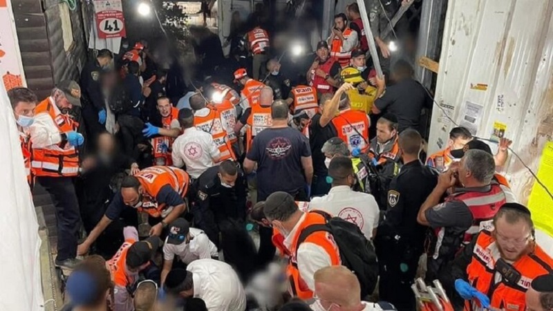 من جانبه قال المتحدث باسم جيش الاحتلال إنه، "خلال احتفالات يوم الهيلولا في عيد لاغ بوعيمر لإحياء ذكرى الحاخام شمعون بار يوحاي، انهار سقف في جبل ميرون (الجرمق) ما أدى إلى مقتل 25 شخصا وإصابة نحو 150 آخرين  من بينهم حالات خطيرة وحرجة".