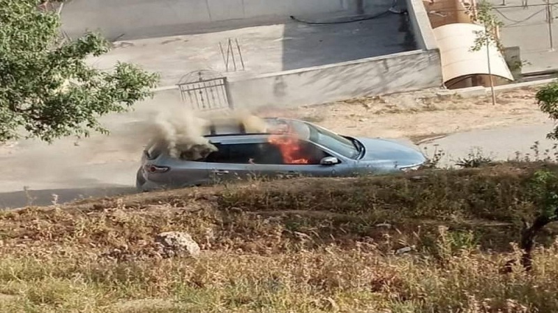 أهالي عقربا يحرقون المركبة التي استخدمت بعملية زعترة جنوب نابلس