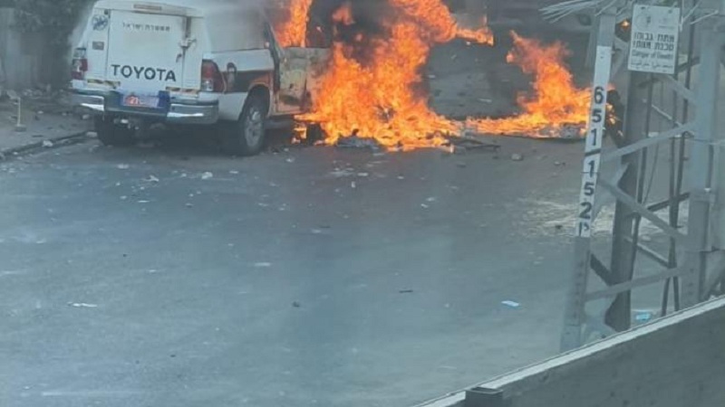 وذكر موقع "عرب 48"، بأن إضرامَ النار، طال 3 سيارات شرطة، مُشيرًا إلى تهشيم سيارات أخرى لها.