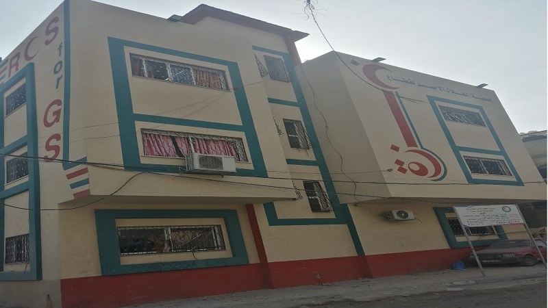 بالصور|| الهلال الأحمر يعلن تعرض مقره في مخيم جباليا لأضرار جسيمة جراء العدوان