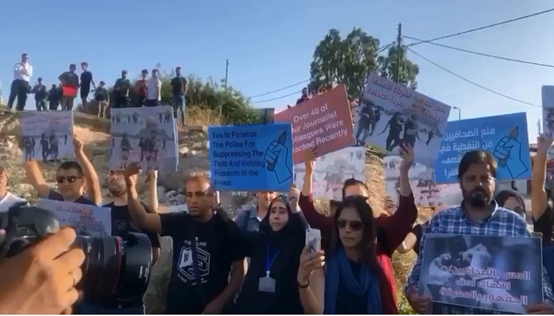 القدس المحتلة: نظم عشرات الصحفيين والمصورين والإعلاميين وقفة احتجاجاية، عصر اليوم، في حي الشيخ جراح، بالقدس المحتلة احتجاجاً على انتهاكات شرطة الاحتلال الإسرائيلية بحقهم وتنديدا بالاعتداء والاعتقالات التي يتعرضون لها.