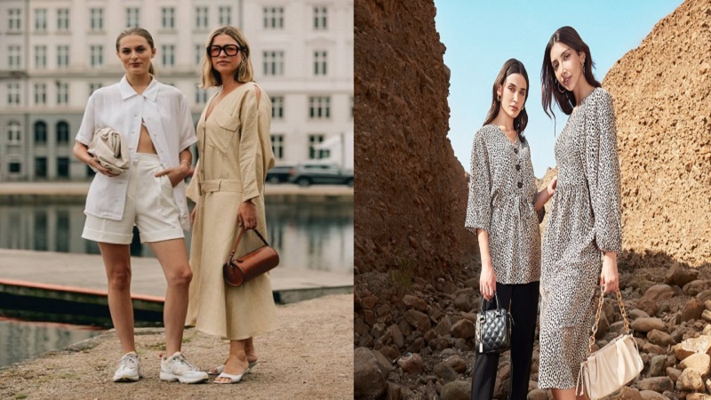 2- يعتبر لون البيج الكريمي هو لون الموضة البسيط المثالي وهو عنصر أساسي في اتجاه الموضة ذات الألوان الترابية. اختاري فستانا أنيقا متوسط الطول مع تصاميم مميزة لمظهر أنيق.