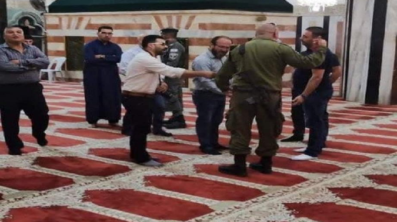 كما اعتدت قوّات الاحتلال بالضرب على سائق مديرية الأوقاف مجدي صلاح، ومرقي الحرم رائد مسودة، وأخرجوهم بالقوة.
