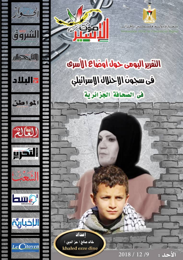 الكوفية الجزائر||  سلطت صفحات الجرائد الجزائرية اليوم الأحد، الضوء على معاناة الأسرى الفلسطينيين في سجون الاحتلال الإسرائيلي، والتي تصدرتها دعوات إنقاذ الأسيرة "إسرائء جعابيص".