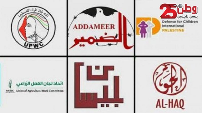 والمؤسسات هي: (مؤسسة الضمير لرعاية الأسير وحقوق الإنسان، والحركة العالمية للدفاع عن الأطفال – فلسطين، ومؤسسة الحق، واتحاد لجان العمل الزراعي، واتحاد لجان المرأة الفلسطينية، ومركز بيسان للبحوث والإنماء).