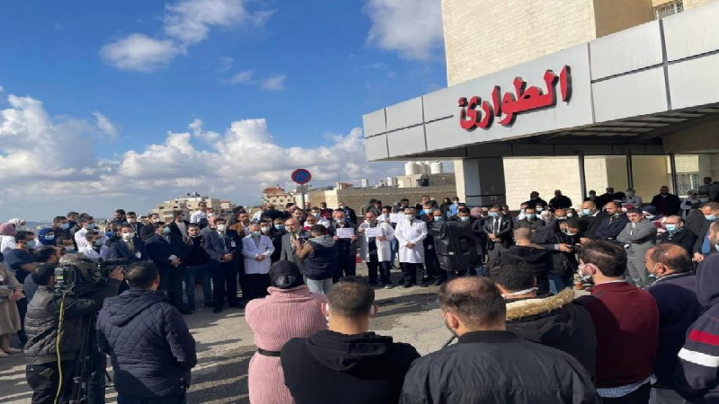 وقفة احتجاجية بمستشفى النجاح لمطالبة الحكومة بصرف مستحقاته