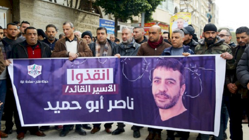 ورفع المشاركون في الوقفة صوراً للأسرى وللأسير المريض ناصر أبوحميد البالغ 49عاماً، الذي يُعاني من أوضاع صحية خطيرة للغاية، وانعدام في المناعة، ولا يستجيب للعلاجات، ولا زال تحت أجهزة التنفس الاصطناعي في مستشفى "برزلاي" الإسرائيلي.