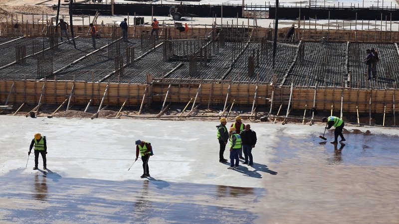 ومنذ ساعات صباح اليوم، بدأت الآليات والمعدات التابعة للشركات الفلسطينية، في ضخ الباطون في القواعد الخرسانية المسلحة بمدينة دار مصر 3 والتي بدأ العمل بها فعليا بداية شهر يناير الماضي.