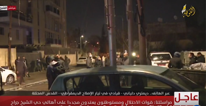 واقتحمت قوات الاحتلال حي الشيخ جراح، اليوم الأحد، لتوفير الحماية للمستوطنين الذي انتشروا في الشوارع والطرقات واحتشدوا في محيط منزل عائلة سالم، واعتدوا على المواطنين وممتلكاتهم، وأقاموا خيمة للمتطرف إيتمار بن غفير الذي أعاد فتح مكتبه اليوم هناك.