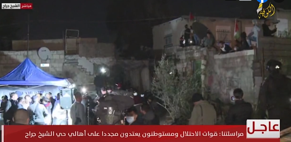 واقتحمت قوات الاحتلال حي الشيخ جراح، اليوم الأحد، لتوفير الحماية للمستوطنين الذي انتشروا في الشوارع والطرقات واحتشدوا في محيط منزل عائلة سالم، واعتدوا على المواطنين وممتلكاتهم، وأقاموا خيمة للمتطرف إيتمار بن غفير الذي أعاد فتح مكتبه اليوم هناك.