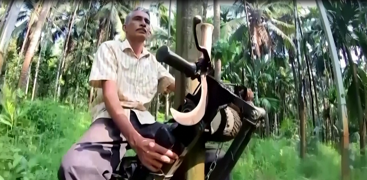 «سكوتر الشجرة».. مزارع يبتكر جهازا لتسلق النخيل