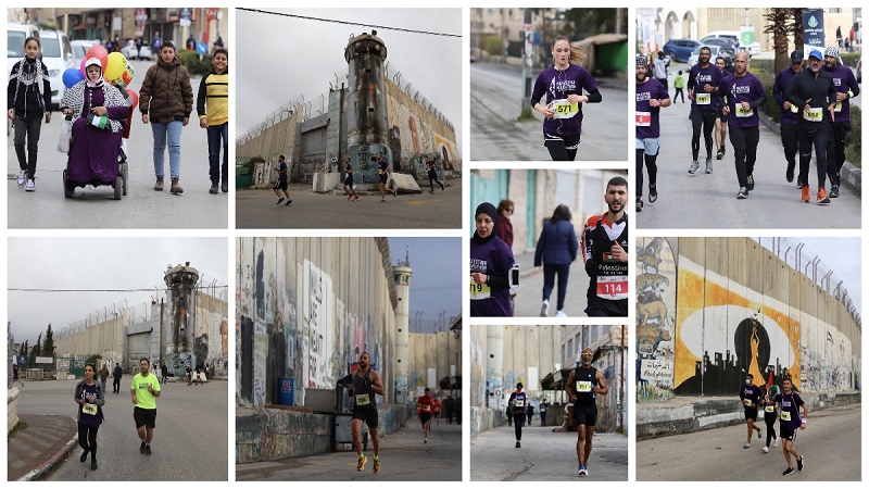 وبدأ خط سير الماراثون، صباح اليوم، من ساحة المهد مرورا بشارع المهد، ومسجد بلال بن رباح، ومنطقة المفتاح في مخيم عايدة شمالًا، وشارع القدس الخليل، ومخيم الدهيشة، وبلدة الخضر، ومنطقة النشاش على مدخل الخضر الجنوبي، والعودة على نفس المسار وصولًا إلى ساحة المهد.