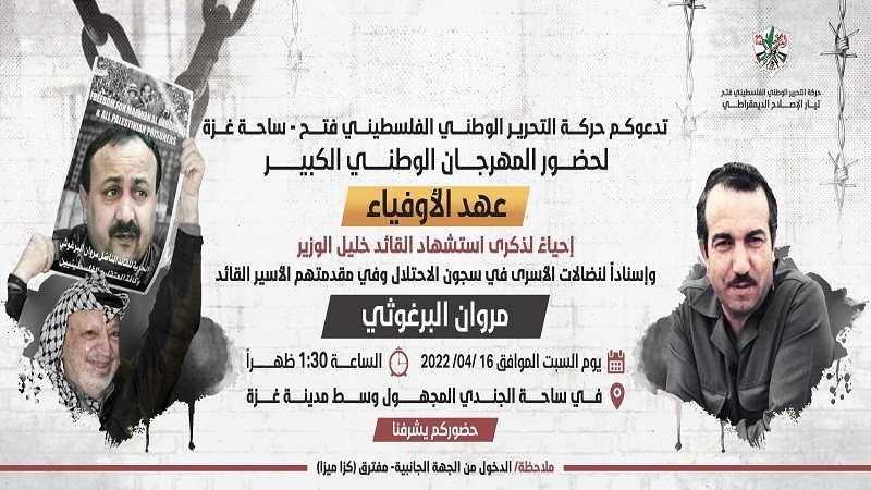 حركة فتح بساحة غزة تدعو للمشاركة في مهرجان «عهد الأوفياء»