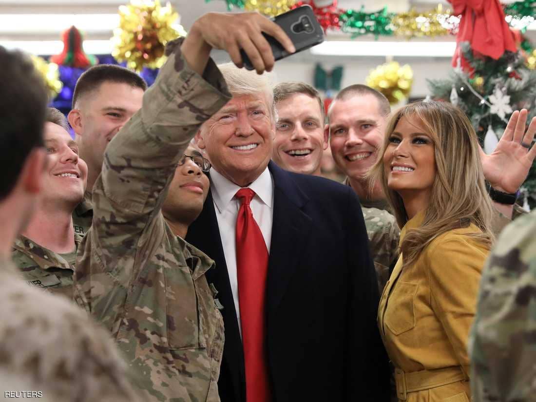 ترامب يلتقي الجنود الأمريكيين في العراق وينفي أي خطط لسحب قواته