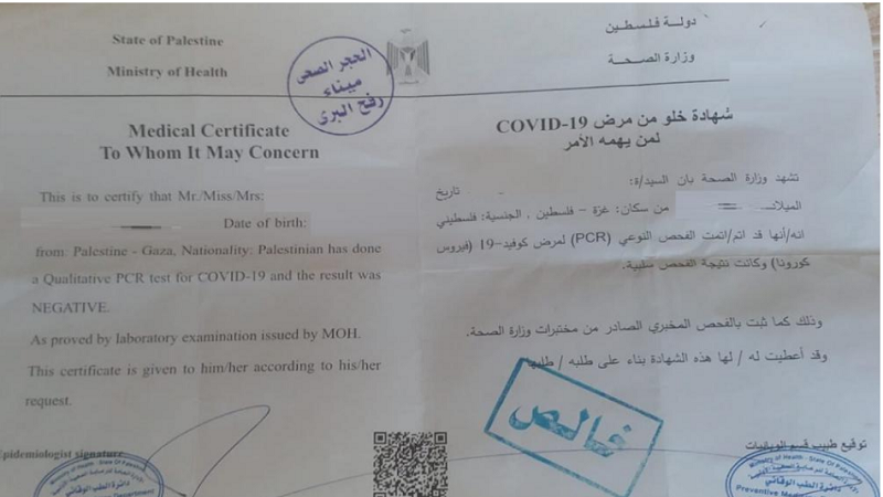 إلغاء شهادة تطعيم "كورونا" عبر معبر رفح