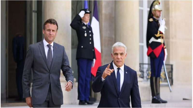 وحذر لبيد خلال مؤتمر صحفي مع الرئيس الفرنسي إيمانويل ماكرون في قصر الإليزية بباريس، اليوم الثلاثاء، من سباق تسلح يهدد الاستقرار والسلام.