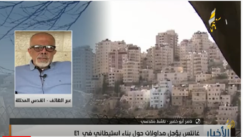 القدس المحتلة: قال الناشط المقدسي ناصر أبو خضير، إن "التغول الاستيطاني ممنهج ومدعوم من قبل الاحتلال الإسرائيلي وقادته، ويكشف الوجه الحقيقي للمشروع الاستيطاني الصهيوني على أرض فلسطين".