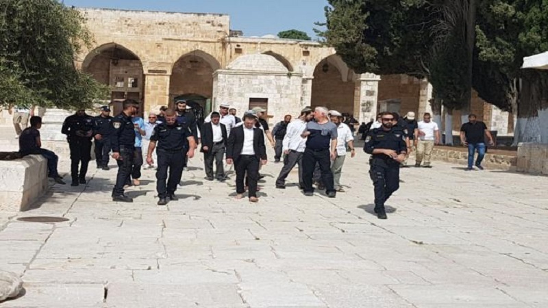 وصباح اليوم، اقتحم عشرات المستوطنين المتطرفين، المسجد الأقصى المبارك من باب المغاربة، بحماية مشددة من شرطة الاحتلال الإسرائيلي، ونفذوا جولات استفزازية في باحاته وأدوا طقوسًا تلمودية في المنطقة الشرقية منه.