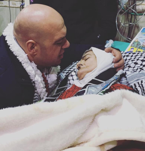وكان الخطيب التقى بوالدته في قسم العناية المكثفة في مخيم بلاطة بنابلس، فور الإفراج عنه من سجون الاحتلال.
