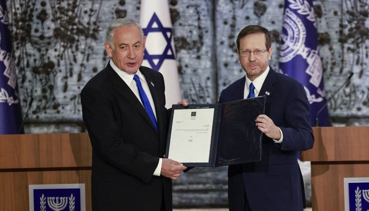 كلف رئيس دولة الاحتلال "يتسحاق هرتسوغ"، اليوم الأحد رئيس حزب الليكود "بنيامين نتنياهو" بتشكيل الحكومة الإسرائيلية الجديدة، بعد نجاح كتلة نتنياهو في حصد 64 مقعدا في الانتخابات التي أجريت في شهر نوفمبر الجاري.