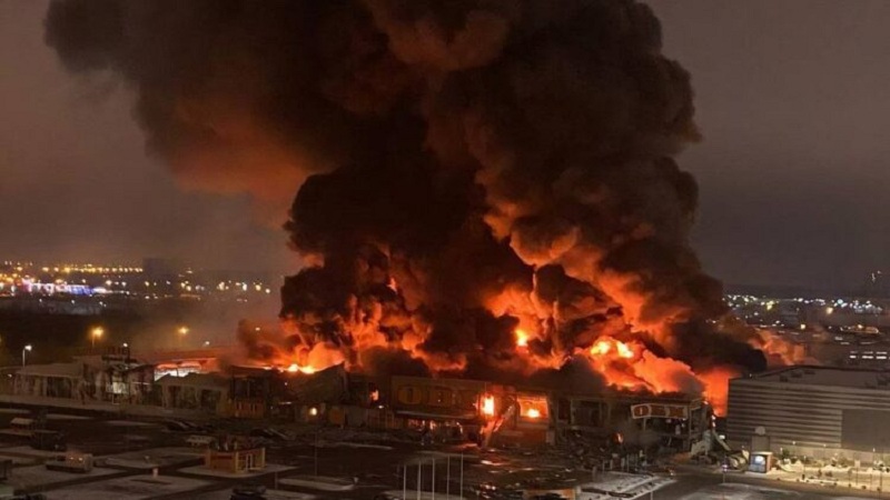 حريق داخل مركز للتسوق في ضواحي موسكو