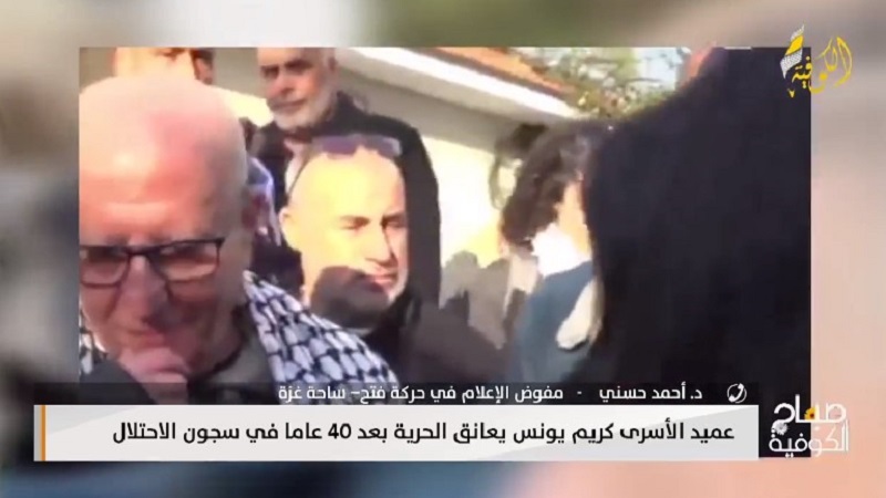 ووجه حسني، خلال لقائه على شاشة «الكوفية»، اليوم الخميس، التحية للمحرر كريم يونس وعائلته وللحركة الأسيرة وأبناء شعبنا، بالإفراج عنه بعد 40 عامًا من الاعتقال في سجون الاحتلال.