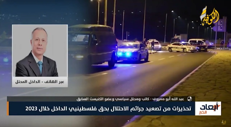 وأوضح أبو معروف أن الاحتلال يستمر في التصعيد عبر ممارسة العنصرية والإرهاب ضد الفلسطينيين عموما وفلسطيني الداخل المحتل بمواصلة سن قوانين عنصرية مثل قانون القومية السابق وسحب الجنسية وغيرها، وكذلك تعديل قانون شرطة الاحتلال ووضع صلاحيات بيد المتطرف إيتمار بن غفير، من أجل تضييق الخناق على فلسطينيي الداخل.