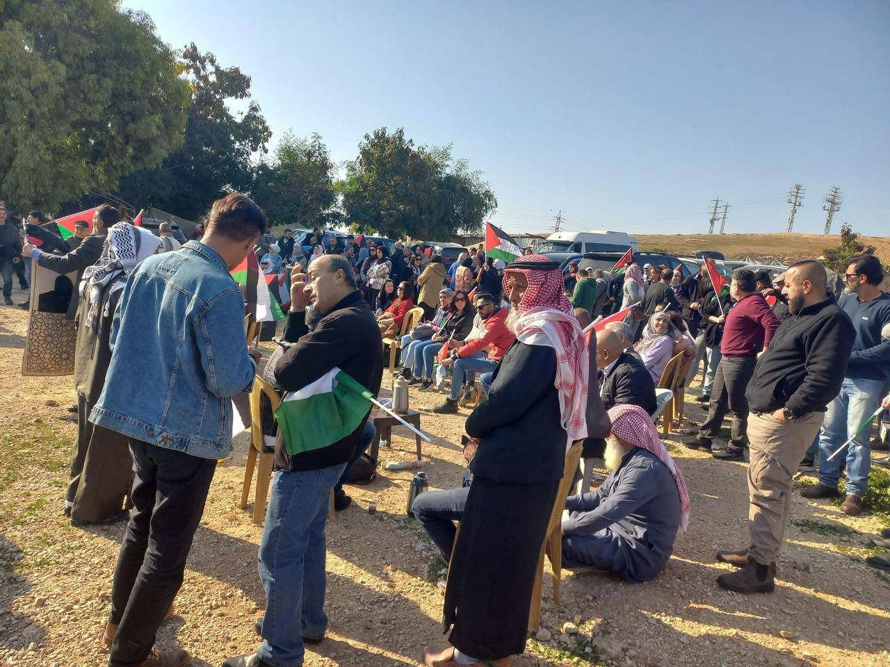 ورفع المشاركون في الوقفة الإسنادية، وبينهم قيادات فلسطينية وفصائل العمل الوطني، العلم الفلسطيني، وشعارات منددة بمشاريع الاحتلال الاستيطانية الهادفة إلى تهجير المقدسيين من أراضيهم.