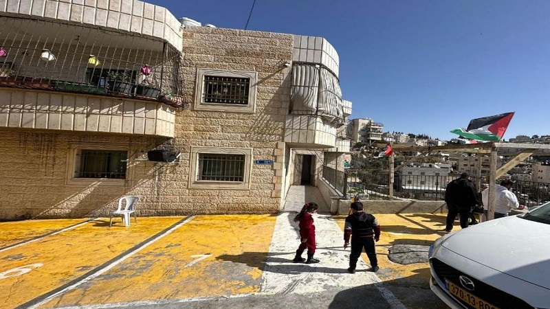 رفع الأعلام الفلسطينية بمحيط المبنى المهدد بالهدم في سلوان