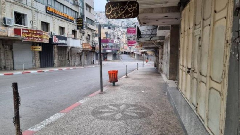 وفي محافظة نابلس، عم الاضراب الشامل، كافة مناحي الحياة، وأغلقت المحال التجارية أبوابها.