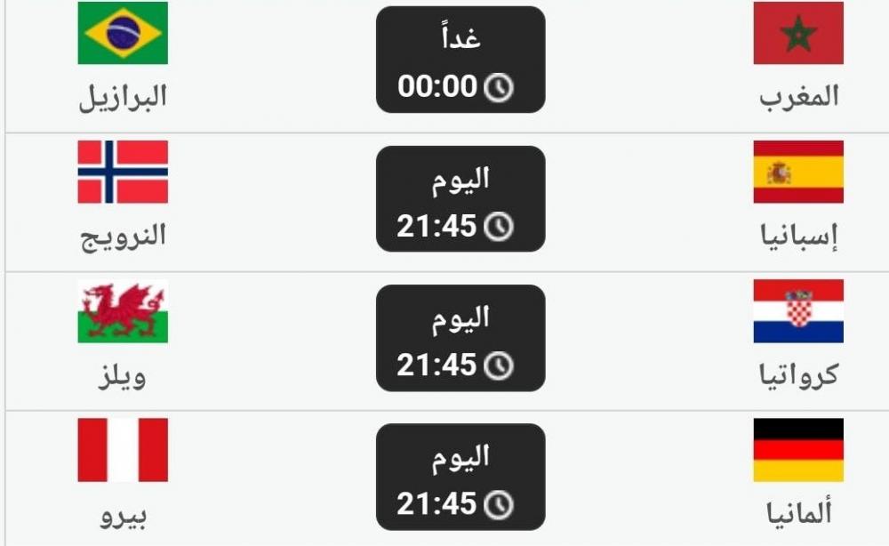 أما وديًا، فتلعب ألمانيا مع بيرو الساعة التاسعة و45 دقيقة مساءً، ولا تذاع المباراة على القنوات الرياضية العربية، ومع الساعة 12 منتصف الليل تتقابل المغرب مع البرازيل، وتنقل قنوات Al Aoula Inter HD، و Arryadia SD/HD اللقاء.