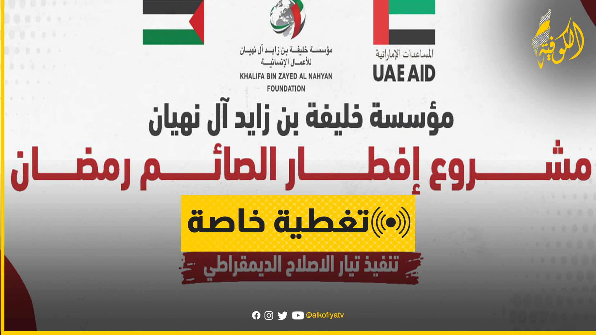 غزة: أطلق تيار الإصلاح الديمقراطي في حركة فتح ساحة غزة، ومؤسسة خليفة بن زايد آل نهيان للأعمال الإنسانية، مشروع "إفطار الصائم" للعام 2023م-1444هـ في قطاع غزة.