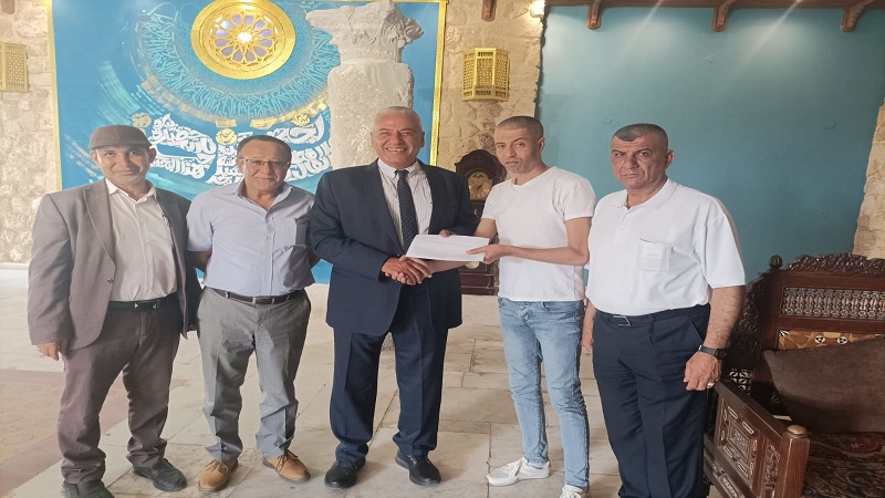 وخلال زيارة من لجنة المقطوعة رواتبهم لوفد الاتحاد الأوروبي المتواجد في فندق المتحف بمدينة غزة، سلم عماد أبو طه رسالة لممثل الوفد.