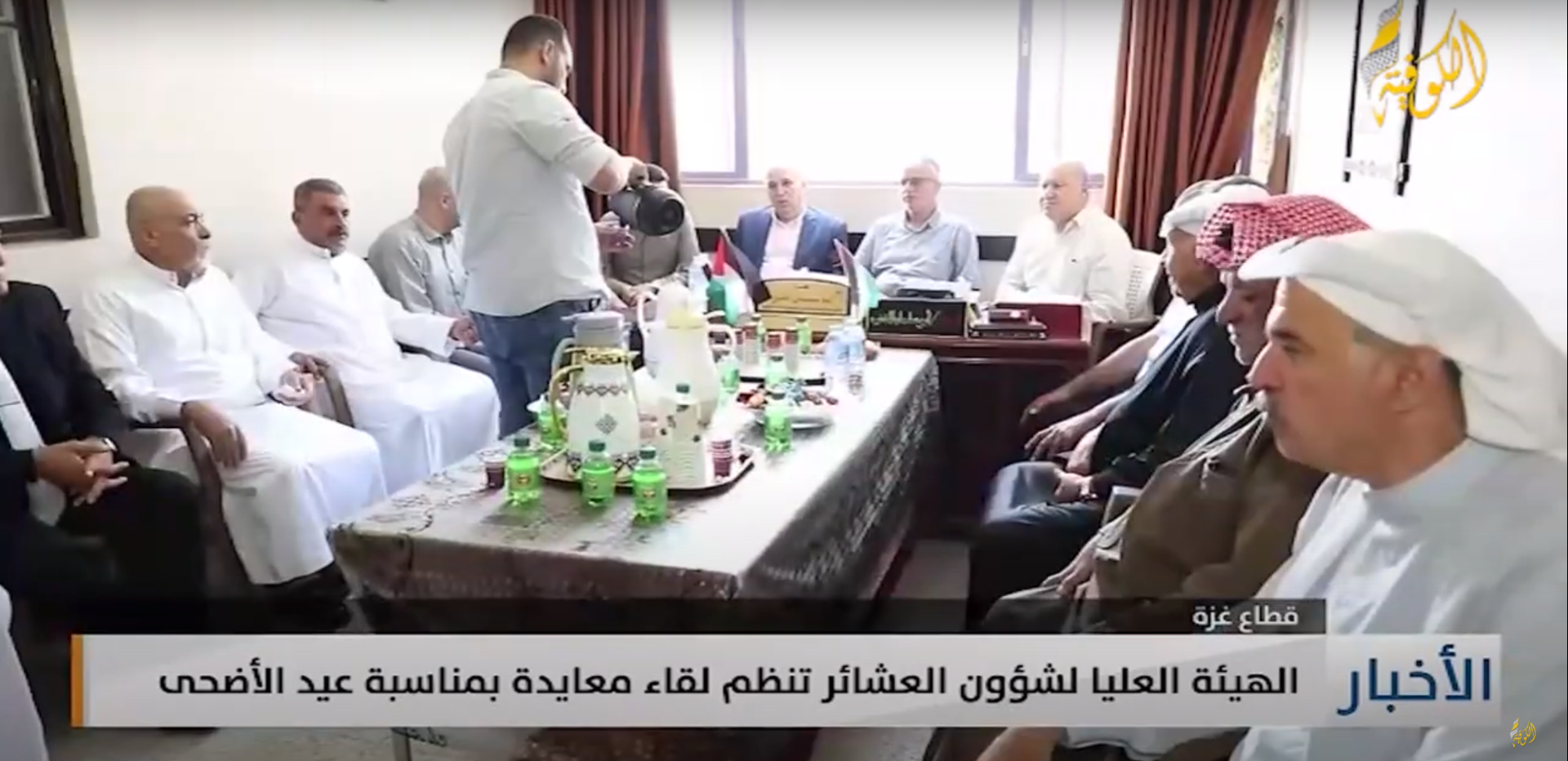 وقال حسني المغني منسق الهيئة العليا لشؤون العشائر، في تصريحات لقناة "الكوفية"، إن "هذه المعايدة التي تستضيفها هيئة العشائر تهدف إلى تعزيز الترابط والتواصل بين كل مكونات شعبنا السياسية والاجتماعية وإن الهيئة العليا لشؤون العشائر عنوان جامع لكل أبناء شعبنا بمختلف انتمائاتهم السياسية والحزبية".
