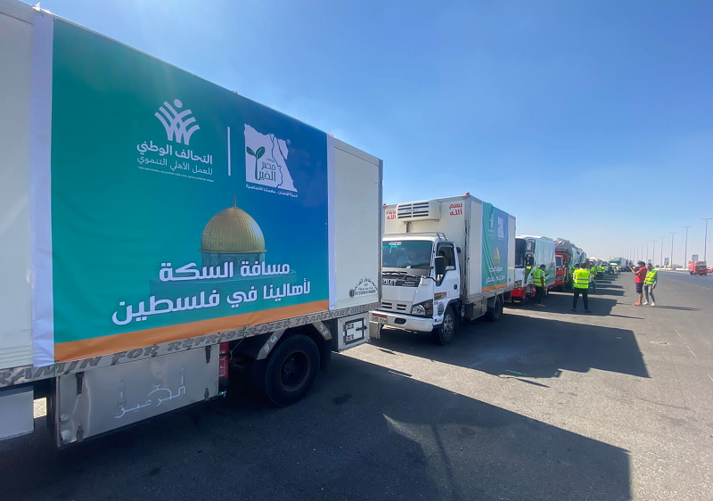 القاهرة: انطلقت اليوم السبت، القوافل الشاملة للتحالف الوطني للعمل الأهلي التنموي وحياة كريمة، والتي تضم قرابة 106 قاطرة محملة بكميات ضخمة من المساعدات الإنسانية تتضمن ألف طن من المواد الغذائية واللحوم و40 ألف بطانية بجانب ما يزيد عن 50 ألف قطعة ملابس وأكثر من 300 ألف علبة من الأدوية والمستلزمات الطبية، وذلك لدعم الأشقاء في فلسطين جراء أعمال العنف التي شنتها قوات الاحتلال الإسرائيلي على قطاع غزة.