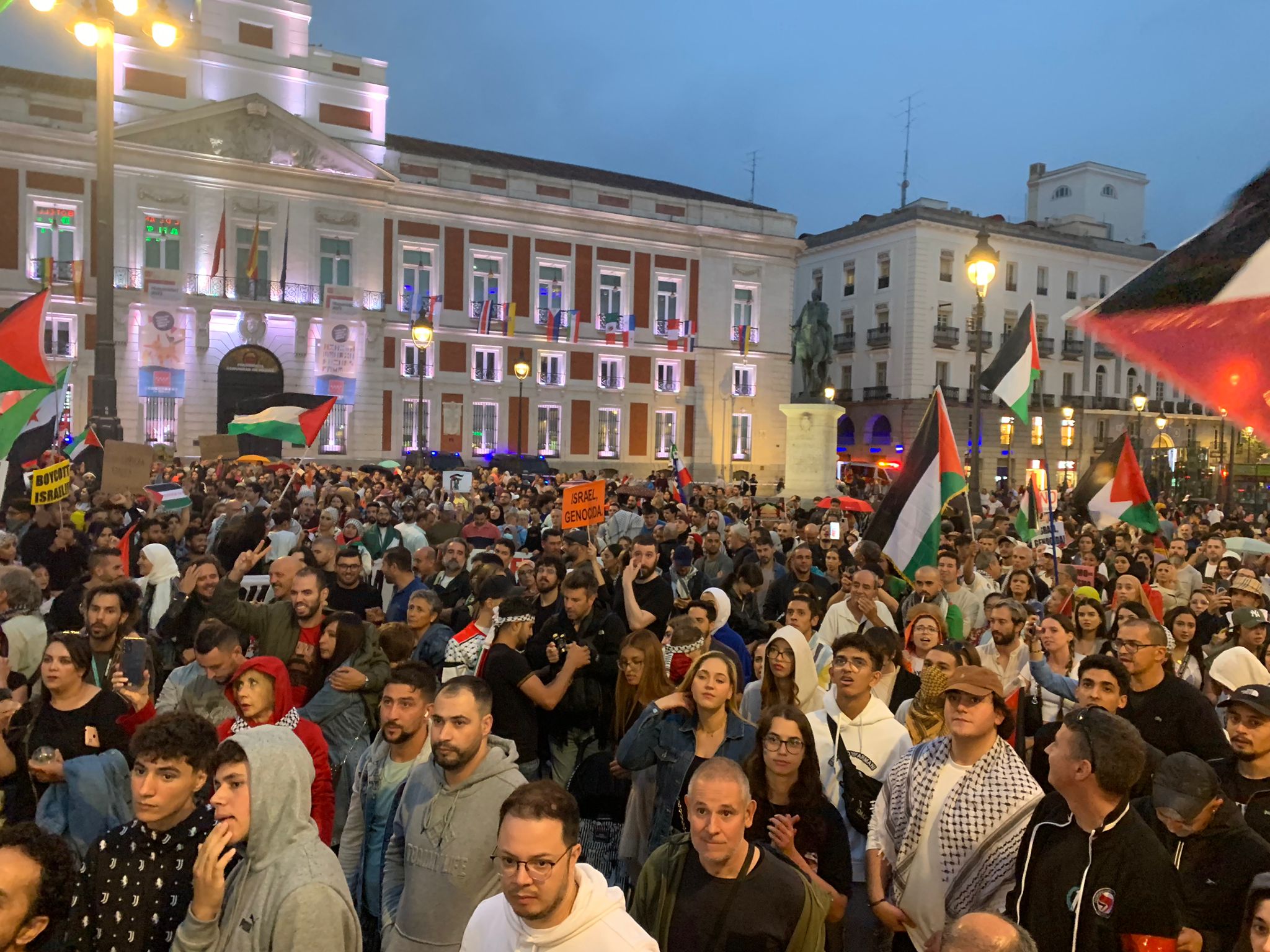 وطالبوا بتقديم رئيس حكومة الاحتلال بنيامين نتنياهو لمحكمة الجنايات الدولية، وهتفوا بحرية فلسطين، رافعين أعلام فلسطين، ولافتات كتب عليها "لا للحرب بسمنا"، "لا للمذبحة"، و"مدريد مع فلسطين"، و"احترموا حقوق الإنسان".
