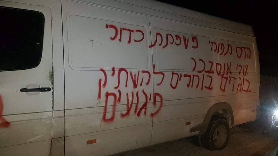 بالصور|| مستوطنون يعطبون مركبات ويخطون شعارات عنصرية بسلفيت