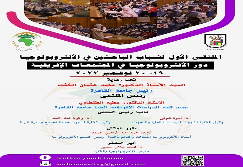 القاهرة: ينظم قسم الأنثروبولوجيا بكلية الدراسات الأفريقية العليا، جامعة القاهرة ١٩  - ٢٠ نوفمبر/ تشرين الثاني الجاري، الملتقى الأول لشباب الباحثين في الأنثروبولوجيا بعنوان "دور الأنثروبولوجيا في المجتمعات الأفريقية".