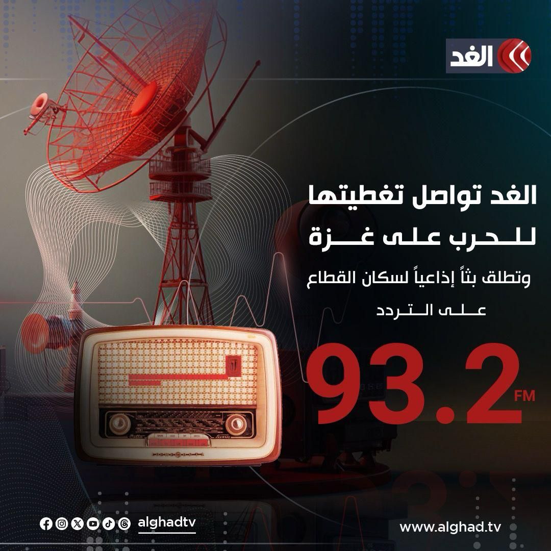 أعلنت قناة الغد عن إطلاق بثا إذاعيا لسكان قطاع غزة، على تردد 93.2 أف أم وذلك ضمن تغطيتها المتواصلة لعدوان الاحتلال على قطاع غزة.