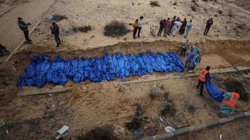 وذكر الأورومتوسطي أن جيش الاحتلال عمد كذلك إلى نبش مقبرة جماعية جرى إقامتها قبل أكثر من عشرة أيام في إحدى ساحات مجمع الشفاء الطبي واستخراج جثث الشهداء منها واحتجازها.