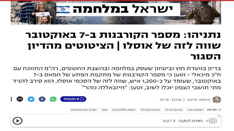 ترجمة خاصة للكوفية: قدّرَ رئيس حكومة الاحتلال بنيامين نتنياهو، عدد ضحايا اتفاق "أوسلو"، بأنه يعادل عدد الضحايا الذين سقطوا في 7 أكتوبر، أي نحو 1200 شخص، و"لكن لفترة أطول من الزمن".
