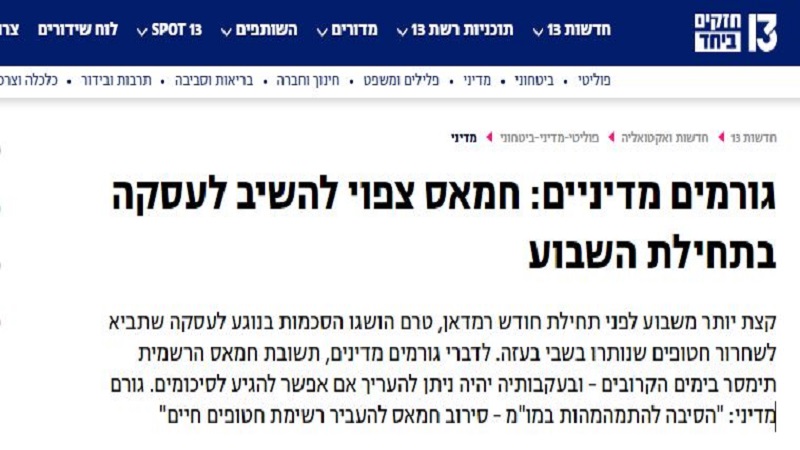 القناة الـ 13: تقديرات إسرائيلية: رد حماس النهائي على الصفقة خلال هذا الأسبوع