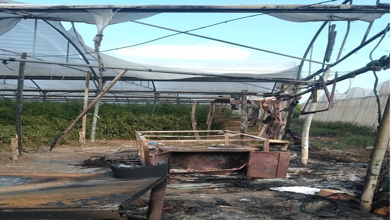 وأضاف، أن النيران أتت على كل البلاستيك والحديد والشبك، والمعدات الزراعية و"ماتورات" وشبكات المياه والرش، والأدوية الزراعية، إضافة إلى تضرر كبير في محيط المنطقة.