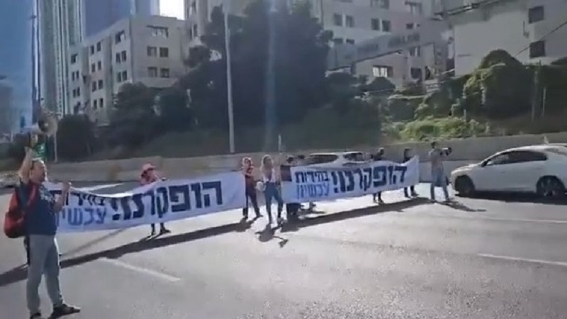 وأظهرت مقاطع فيديو من الطريق السريع جنوب تل أبيب، متظاهرين يرفعون لافتة كبيرة كتب عليها "كفى لحكومة الدمار" لإغلاق الطريق، ومنعوا المركبات من التقدم في وقت الذروة.