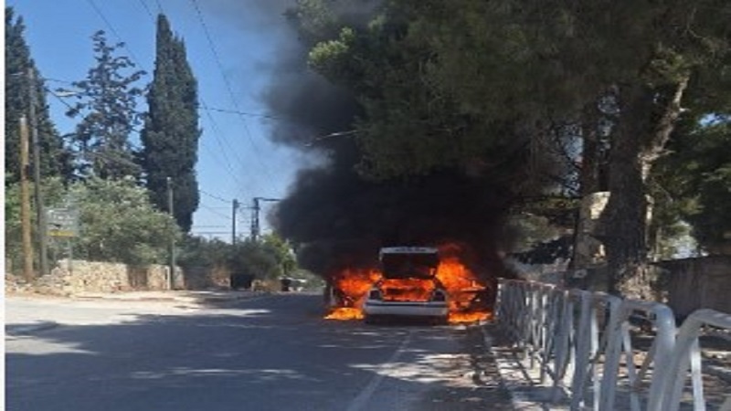 مستعمرون يحرقون مركبة في برقا شرق رام الله