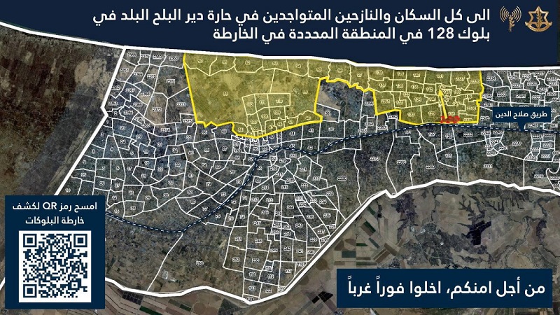غزة: أصدر جيش الاحتلال "الإسرائيلي"، مساء اليوم الأحد، أوامر إخلاء جديدة تطالب المواطنين بالنزوح قسرا عن منطقة في مدينة دير البلح وسط قطاع غزة.